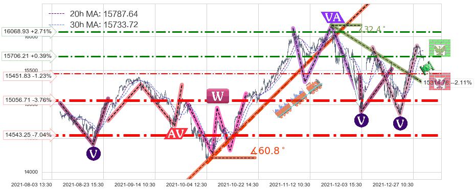 ♘ 阻力价格位15706.21,可信任强度55.78%,距离最后交易2021-12-31 15:30形成的收盘价格15645.00相差 +0.39%