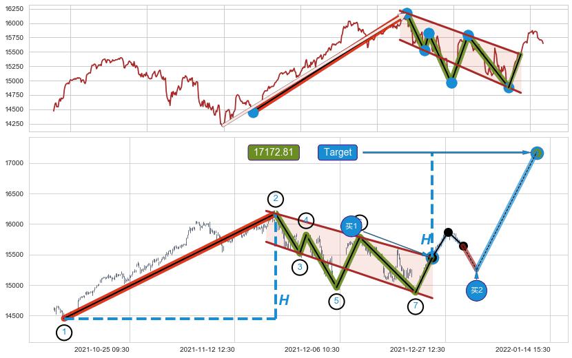 ➣ AI预测: 假定反转启动后, 第❸目标位置(05-04:11, 16172.50)