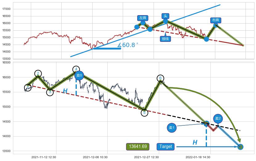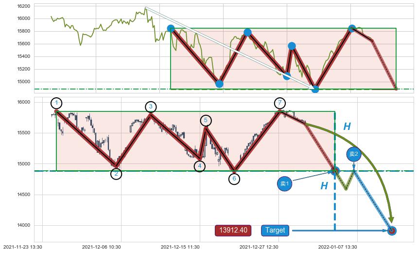 ➣ 最小反转跌幅→𝐇: 790.27 (头部与颈线垂直距离)