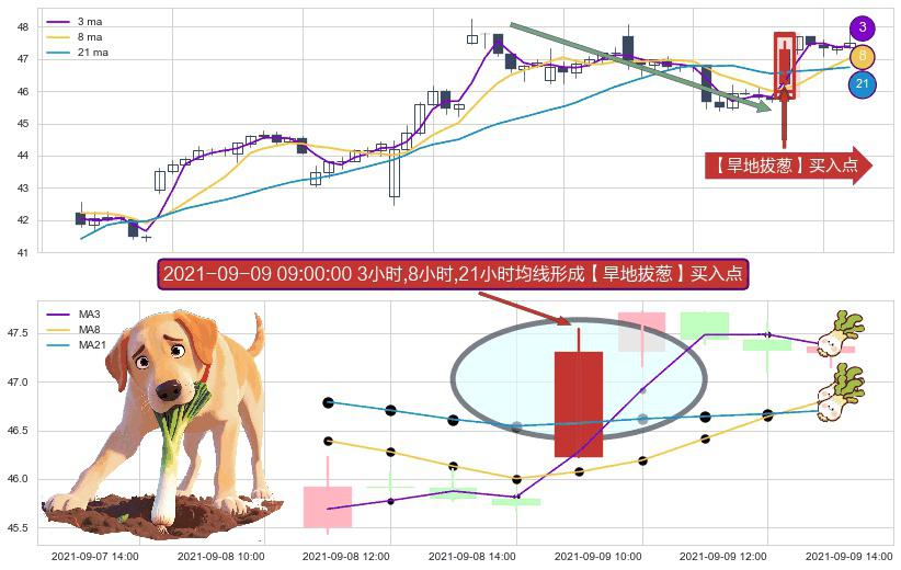 ⚀ 2021-09-09 09:00:00小时显现 3小时-8小时-21小时均线 【旱地拔葱】买入点 看多信号,后市看涨,买入