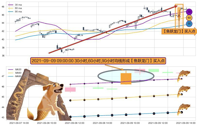 ⚀ 2021-09-09 09:00:00小时显现 30小时-60小时-90小时均线 【鱼跃龙门】买入点 看多信号,后市看涨,买入