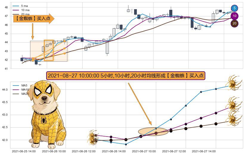 ⚀ 2021-08-27 10:00:00小时显现 5小时-10小时-20小时均线 【金蜘蛛】买入点 看多信号,后市看涨,买入