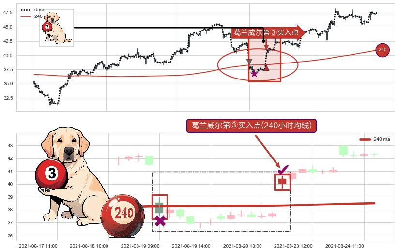 ⚀ 2021-08-23 09:00:00-小时显现 葛兰威尔均线 240小时均线 第③买入点 上升趋势的中继信号,后市看涨,买进信号