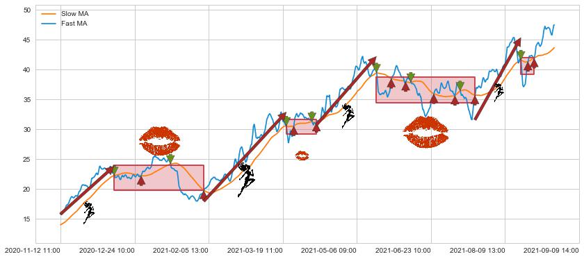 05-18 14:00至07-21 10:00 慢线与快线多次接触,存在上下穿越,有缠绕