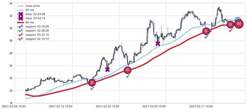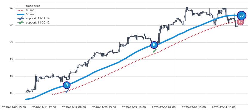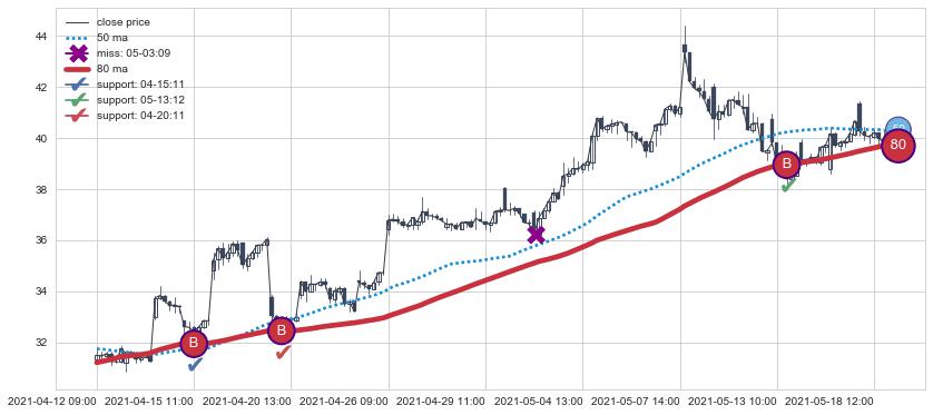 ⚄ 价格在均线获取支撑后已再次向上反弹了【较长】距离, 第②买入点 支撑效果得到【初步确认】