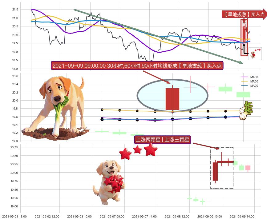 | 2 🅚:塔形底 | 圆底 ➕ 🎢:【旱地拔葱】买入点均线组合买入点信号形成后,猜想后续向上脱离整理形态,持续突破上升 ☞ 看多信号 ⇥ 【均线】交织【🅚线】⇥ 综合量化分数: 51 | > |