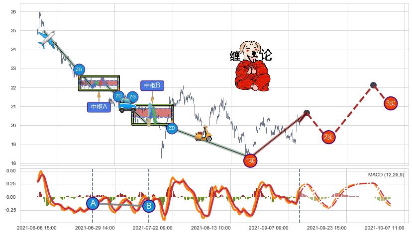 从2021-06-02 13:00至2021-07-19 09:00,共包含210个小时,阶段股价下跌-31.94%,阶段股价变动位移路程比: 1 : 3