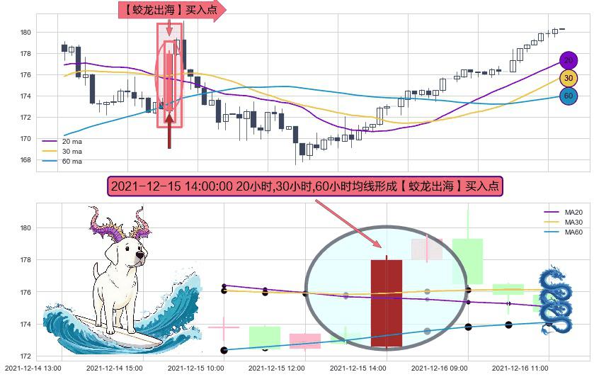 形态多维评估: ⚀ 2021-12-15 14:00:00小时显现 20小时-30小时-60小时均线 【蛟龙出海】买入点 看多信号,后市看涨,买入