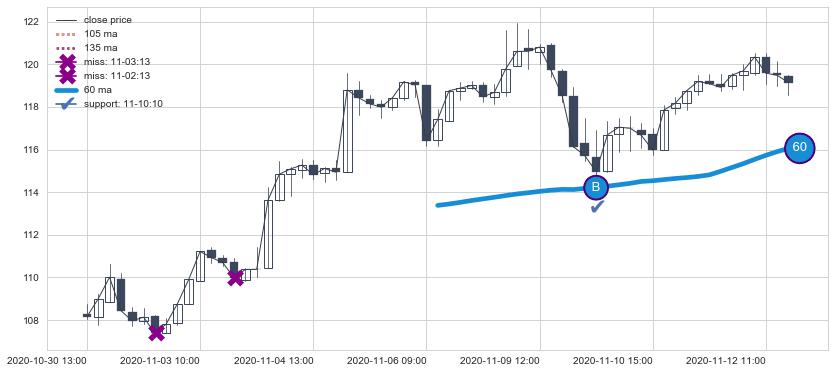 上涨趋势10-30 13:00-11-12 13:00,均线60确认关键支撑1处