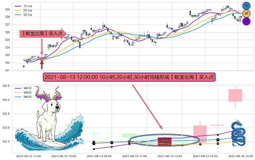 形态多维评估: ⚀ 2021-08-13 12:00:00小时显现 10小时-20小时-30小时均线 【蛟龙出海】买入点 看多信号,后市看涨,买入