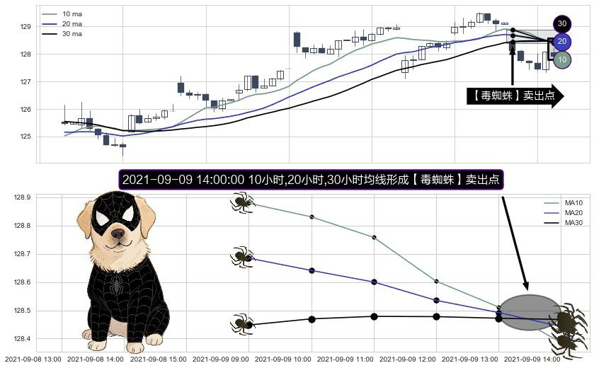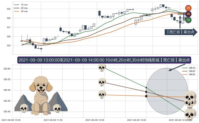 形态多维评估: ⚀ 2021-09-09 14:00:00-小时至2021-09-09 14:00:00-小时显现 10小时-20小时-30小时均线 【死亡谷】卖出点 看空信号,后市看跌,卖出