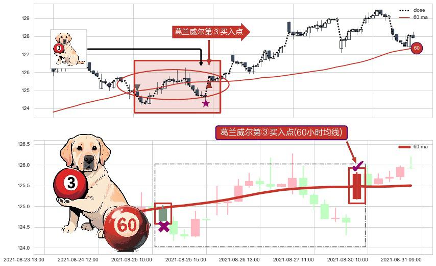 形态多维评估: ⚀ 2021-08-30 09:00:00-小时显现 葛兰威尔均线 60小时均线 第③买入点 上升趋势的中继信号,后市看涨,买进信号