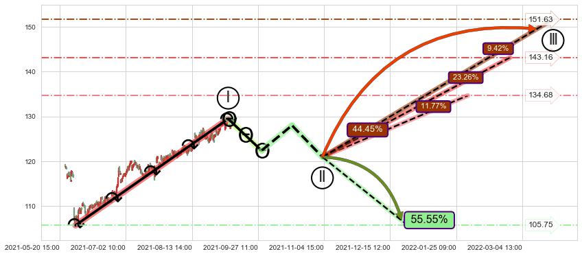 ➢ 循环浪继续向上【最低】位置(02-01:09, 134.68),匹配聚类样本比例26.48%, 可能性概率11.77%