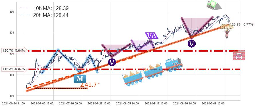♞ 10小时均线:128.39,20小时均线:128.44→ 快线<慢线