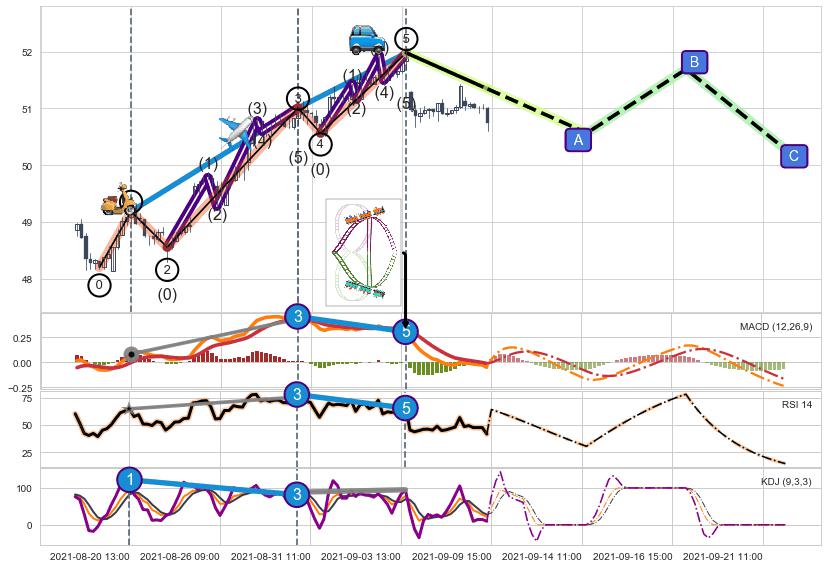 ➢ 1,3,5驱动浪MACD, RSI, KDJ走势都出现【常规背离】反转信号增强