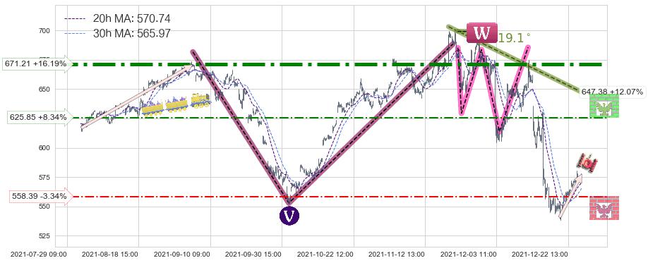 ♘ 阻力价格位625.85,可信任强度49.82%,距离最后交易2021-12-27 16:00形成的收盘价格577.68相差 +8.34%