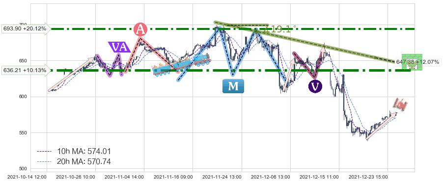 ♘ 阻力价格位693.90,可信任强度75.92%,距离最后交易2021-12-27 16:00形成的收盘价格577.68相差 +20.12%
