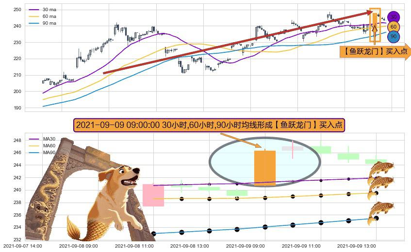 形态多维评估: ⚀ 2021-09-09 09:00:00小时显现 30小时-60小时-90小时均线 【鱼跃龙门】买入点 看多信号,后市看涨,买入