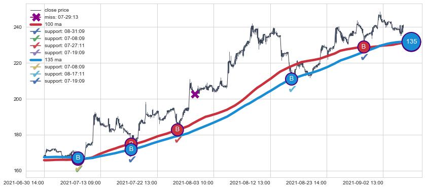 上涨趋势06-30 14:00-09-08 12:00,均线100, 135确认关键支撑5处