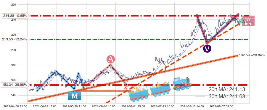♞ 20小时均线:241.13,30小时均线:241.68→ 快线<慢线