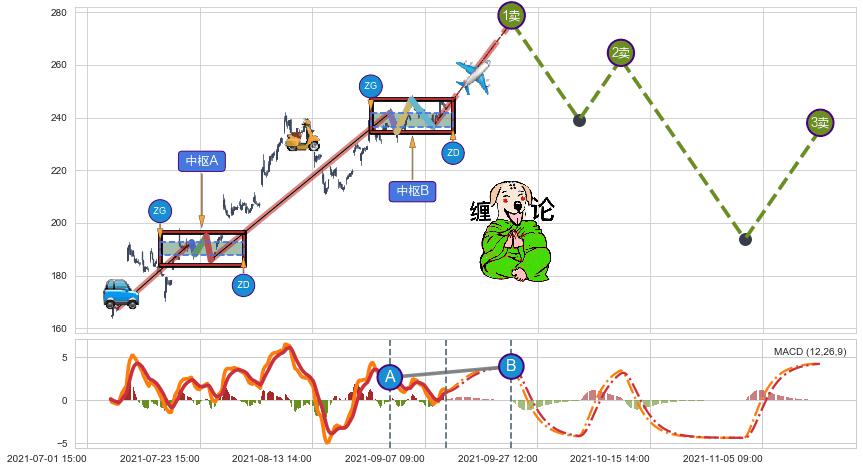 ➣ 【未完成】缠论 起点:07-08:15, 完成第1中枢A,完成第2中枢B,到达09-09:15