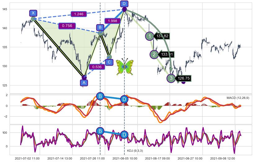 ➣ 已完成【蝴蝶】形态起点X: 06-30:15, 终点D: 08-02:09, 共141交易小时