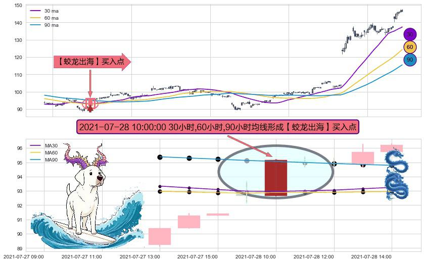 形态多维评估: ⚀ 2021-07-28 10:00:00小时显现 30小时-60小时-90小时均线 【蛟龙出海】买入点 看多信号,后市看涨,买入