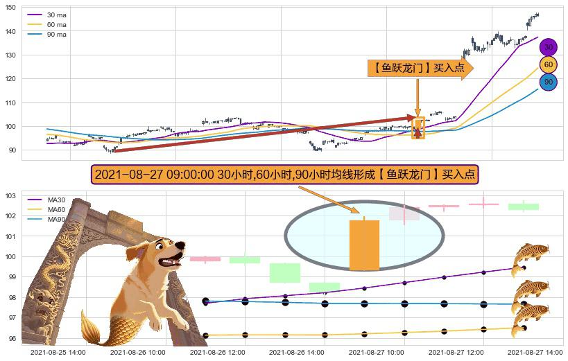 形态多维评估: ⚀ 2021-08-27 09:00:00小时显现 30小时-60小时-90小时均线 【鱼跃龙门】买入点 看多信号,后市看涨,买入