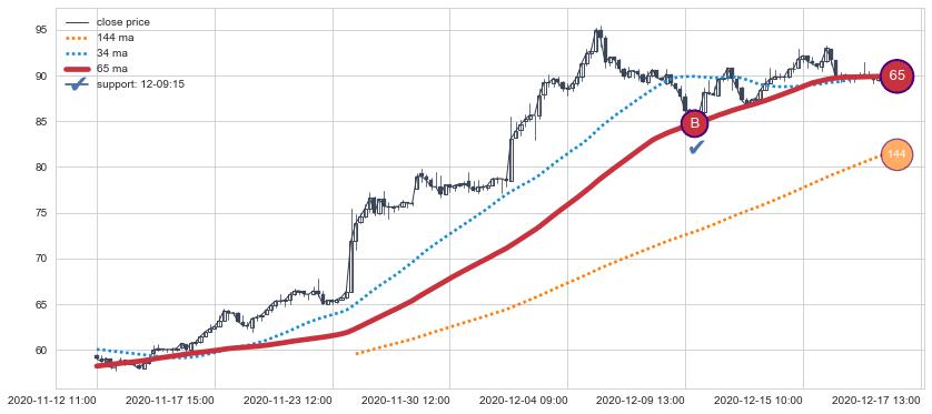 上涨趋势11-12 11:00-12-17 13:00,均线65确认关键支撑1处