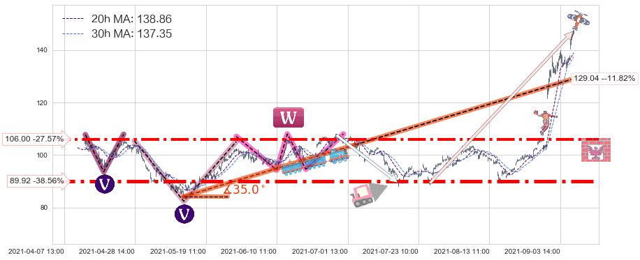 ♘ 支撑价格位89.92,可信任强度92.66%,距离最后交易2021-09-09 14:00形成的收盘价格146.34相差 -38.56%