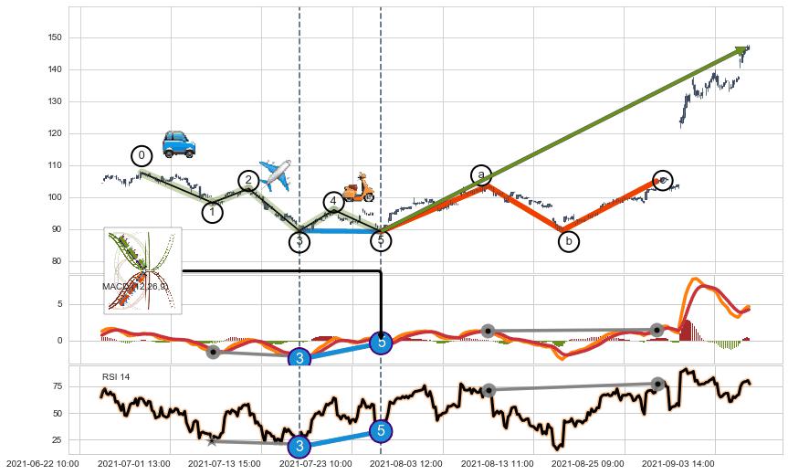 从2021-05-27 13:00至2021-06-29 10:00,共包含142个小时,阶段股价上涨5.69%,阶段股价变动位移路程比: 1 : 14