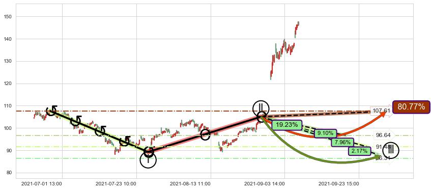 ➢ 循环浪继续向下【最高】位置(09-21:13, 96.64),匹配聚类样本比例47.32%, 可能性概率9.10%