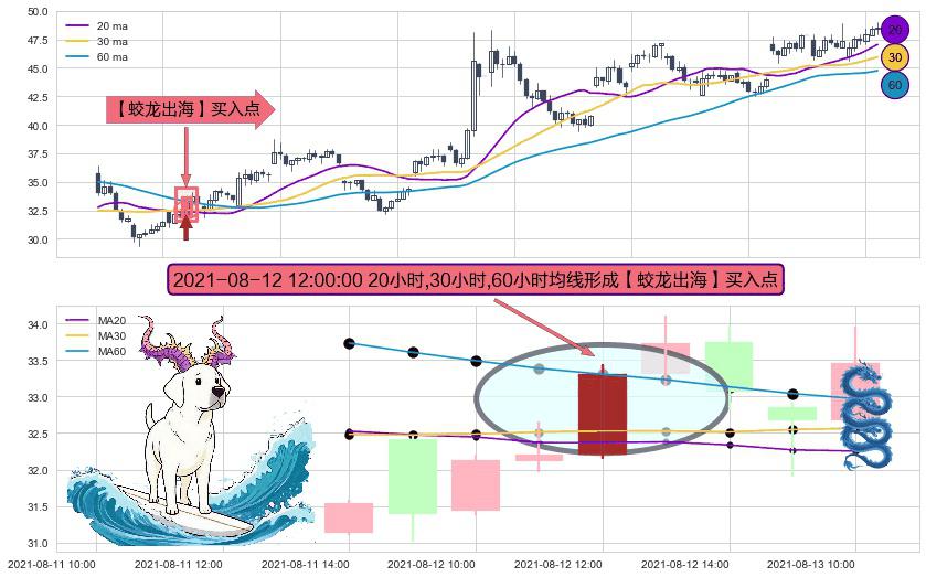 形态多维评估: ⚀ 2021-08-12 12:00:00小时显现 20小时-30小时-60小时均线 【蛟龙出海】买入点 看多信号,后市看涨,买入