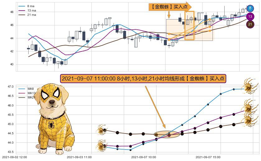 形态多维评估: ⚀ 2021-09-07 11:00:00小时显现 8小时-13小时-21小时均线 【金蜘蛛】买入点 看多信号,后市看涨,买入