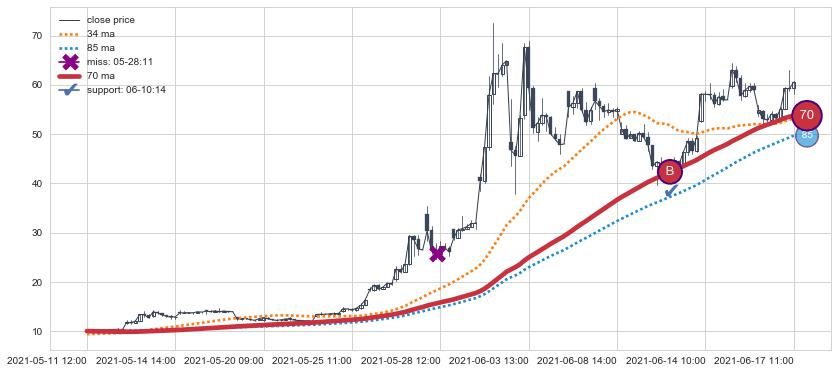 上涨趋势05-11 12:00-06-17 11:00,均线70确认关键支撑1处