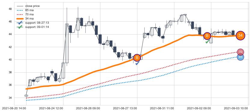 上涨趋势08-20 14:00-09-03 10:00,均线34确认关键支撑2处
