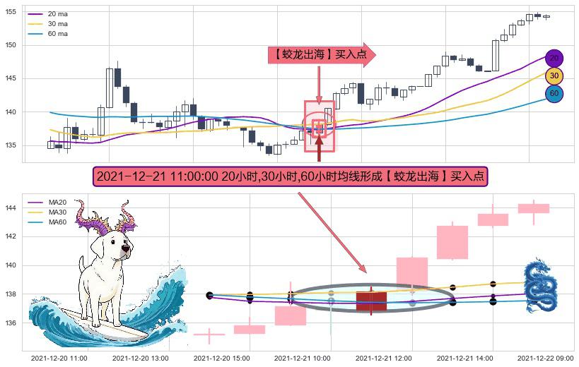 形态多维评估: ⚀ 2021-12-21 11:00:00小时显现 20小时-30小时-60小时均线 【蛟龙出海】买入点 看多信号,后市看涨,买入