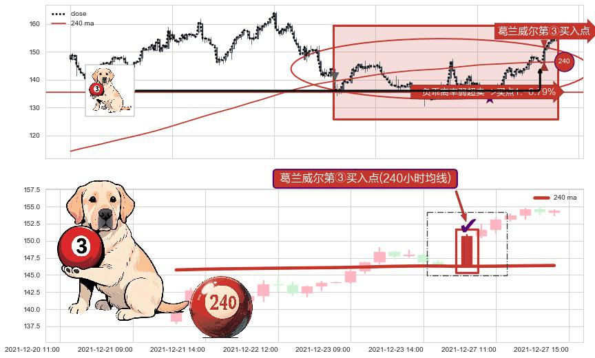 形态多维评估: ⚀ 2021-12-27 09:00:00-小时显现 葛兰威尔均线 240小时均线 第③买入点 上升趋势的中继信号,后市看涨,买进信号
