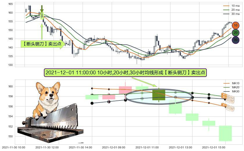 形态多维评估: ⚀ 2021-12-01 11:00:00小时显现 10小时-20小时-30小时均线 【断头铡刀】卖出点 看空信号,后市看跌,卖出