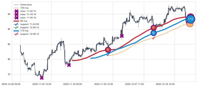 下跌趋势12-01 13:00-12-15 15:00,均线144, 115确认关键阻力2处