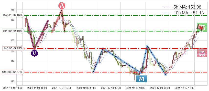 ➣ 【已确认突破】最后价格:154.36与最小【反转】第一目标价格→(12-28:13: 160.03 )相较: 上涨空间【中等】