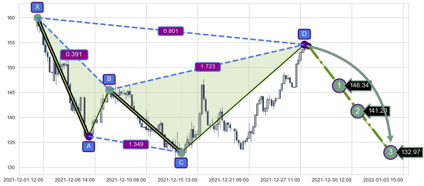 ➢ AI预测: 假定反转如期而至,第❶价格目标位置(12-29:14, 146.34)