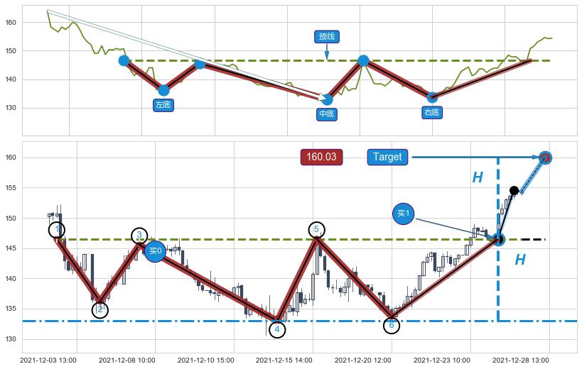 ➢ 图示②④⑥三个波谷均在 146.50 附近成功获得【支撑】→反弹上涨