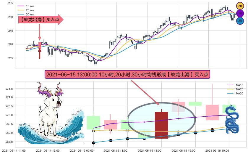 ⚀ 2021-06-15 13:00:00小时显现 10小时-20小时-30小时均线 【蛟龙出海】买入点 看多信号,后市看涨,买入