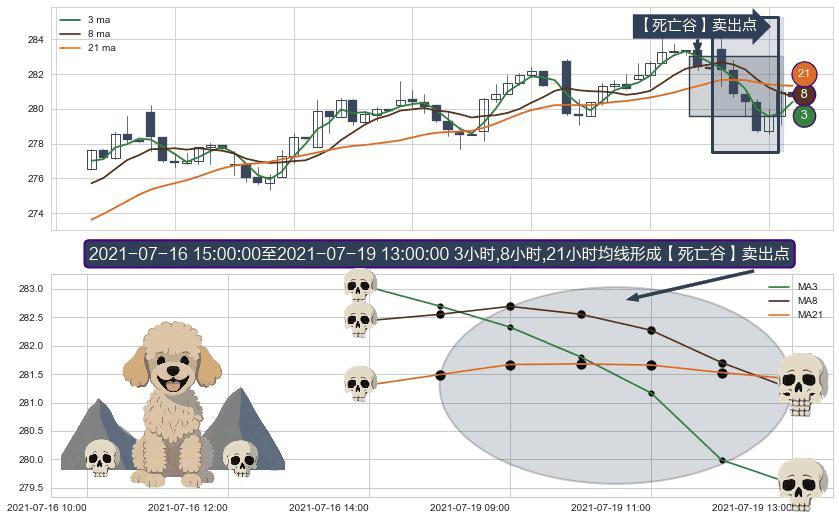 ⚀ 2021-07-19 09:00:00-小时至2021-07-19 13:00:00-小时显现 3小时-8小时-21小时均线 【死亡谷】卖出点 看空信号,后市看跌,卖出
