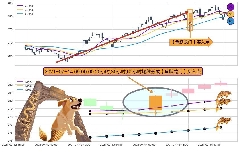 ⚀ 2021-07-14 09:00:00小时显现 20小时-30小时-60小时均线 【鱼跃龙门】买入点 看多信号,后市看涨,买入