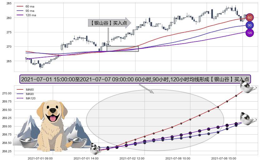 ⚀ 2021-07-02 09:00:00-小时至2021-07-07 09:00:00-小时显现 60小时-90小时-120小时均线 【银山谷】买入点 看多信号,后市看涨,买入