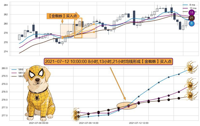 ⚀ 2021-07-12 10:00:00小时显现 8小时-13小时-21小时均线 【金蜘蛛】买入点 看多信号,后市看涨,买入