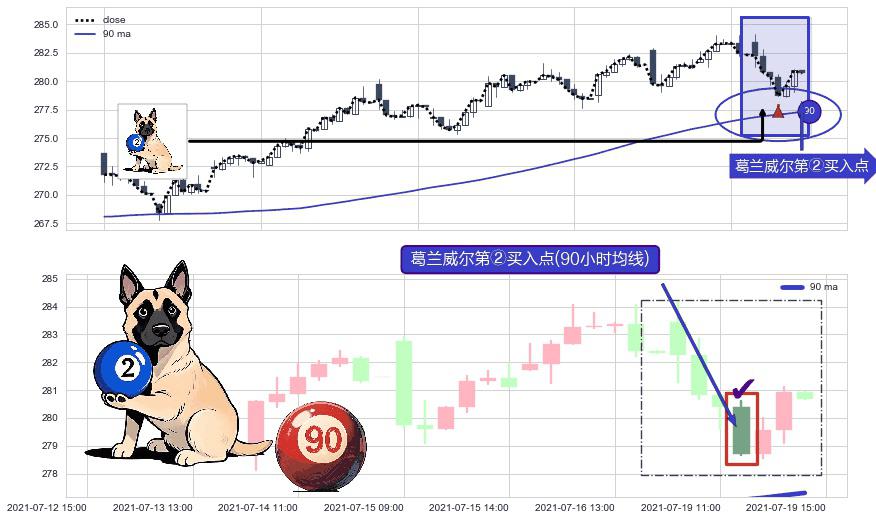 ⚀ 2021-07-19 12:00:00-小时显现 葛兰威尔均线 90小时均线 第②买入点 上升趋势的中继信号,后市看涨,买进信号