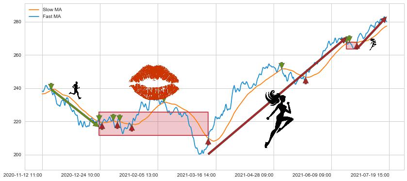 06-18 14:00至06-28 09:00 慢线与快线多次接触,存在上下穿越,有缠绕